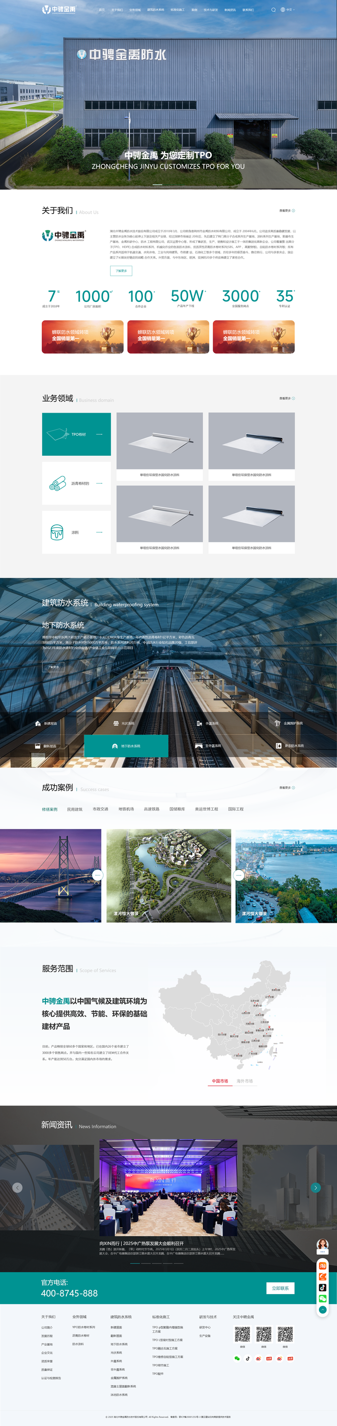 湖北中骋金禹防水技术股份有限公司成立于2018年3月,公司前身是荆州市金禹防水材料有限公司,成立于2004年6月公司追求高质量稳健发展,以主营防水业务为核心延伸上下游及相关产业链,经过深耕市场接近20年后先后建立了荆门高分子合成系列生产基地、涂料系列生产基地、胎基布生产基地、金禹科研中心、防水工程有限公司、武汉运营中心等。